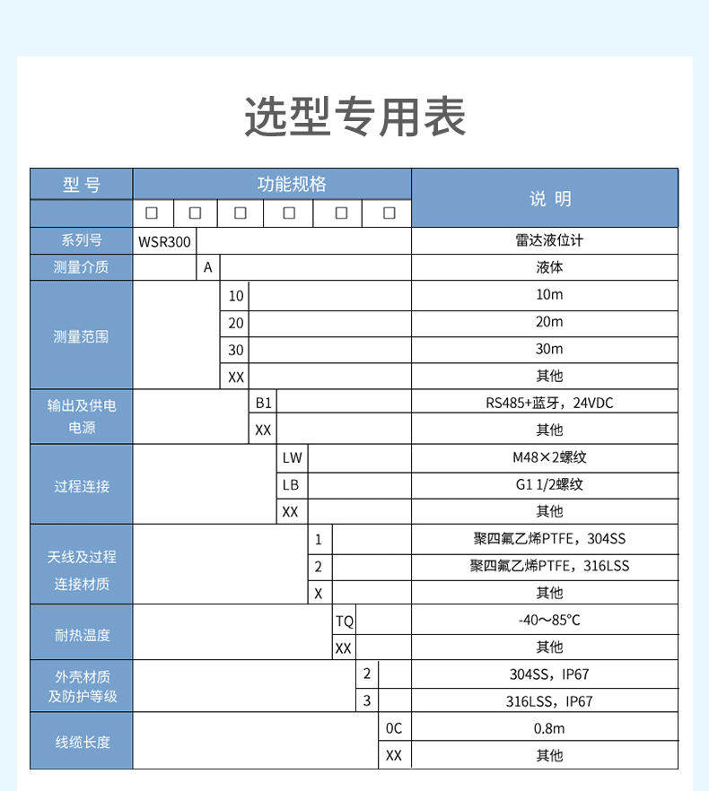 您的位置: 首頁 > 水位雷達液位計 → 聯測儀表WSR300雷達液位計60~64GHz藍牙輸出