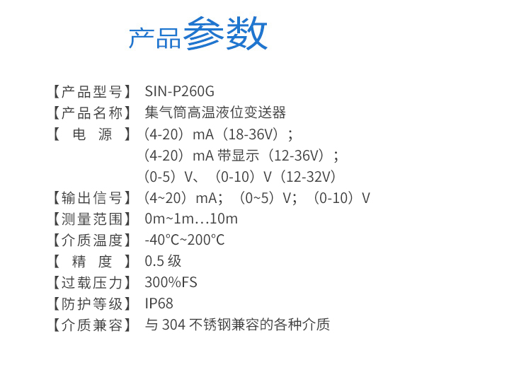 您的位置: 首頁 > 投入式液位計 → 聯測儀表SIN-P260G殼體高溫型集氣筒式液位計/水位計