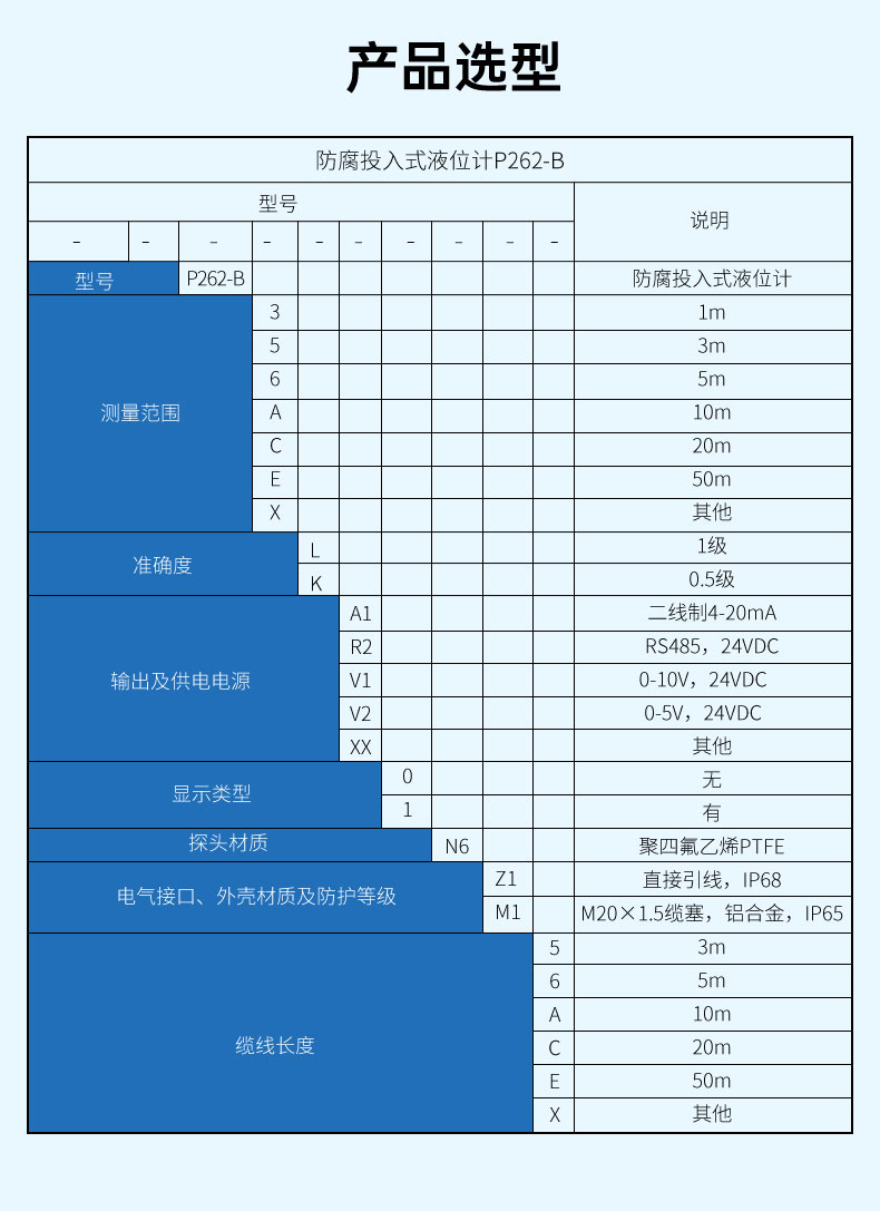 聯(lián)測(cè)儀表SIN-P262/P262-B陶瓷芯體防腐投入式液位計(jì)產(chǎn)品特點(diǎn):防腐型,密封性好,防護(hù)能力高
