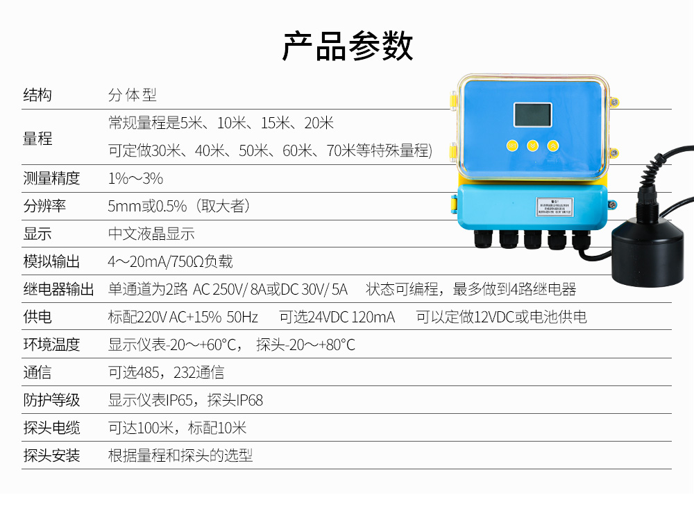 超聲波泥位計輸出信號:4-20ma、RS485通訊
