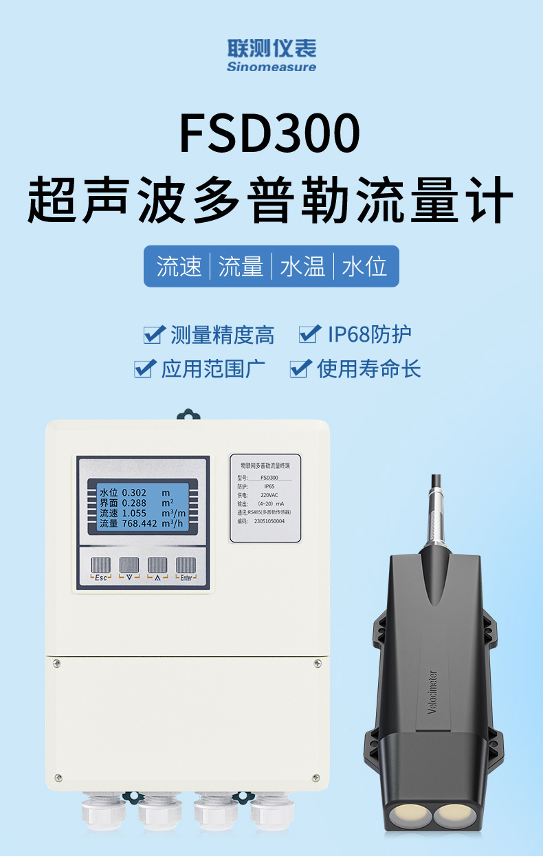 聯測儀表SIN-FSD300多普勒超聲波流量計是在自然水域或者渠道、管道中測量水的流速、流量的儀表,利用超聲波技術探測流速,測量點在機體前方,不破壞流場;測量精度高,測流線性,可測瞬時流速,也可測平均流速;無轉動部件,不懼泥沙堵塞和水草纏繞,探頭堅固耐用,不存在泥沙堵塞或水草、雜物纏繞等問題,最適用于泥沙懸浮物含量高,水草等漂浮物多和極其嚴苛的冰期場合的河流中測量。