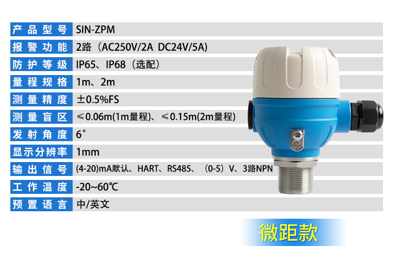 可定制小盲區:盲區可做0.4m(5m)、0.5m(10m)、0.6m(15m)